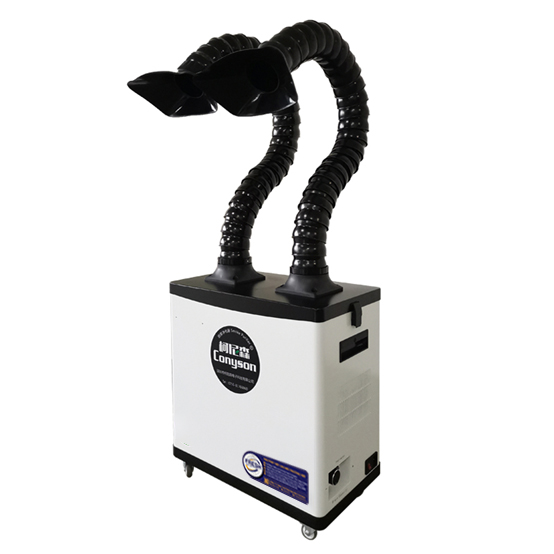 Conyson 200W là dòng máy lọc khói chuyên nghiệp nhỏ gọn, lý tưởng cho các khu vực thao tác cá nhân, nhà xưởng điện tử hoặc bàn làm việc cố định. Thiết bị kết hợp hiệu quả giữa lọc bụi – hút khói – xử lý khí độc trong một hệ thống khép kín, không cần ống xả ra ngoài. Thiết bị được thiết kế chuyên dụng để xử lý khói, bụi mịn và khí độc phát sinh trong các quy trình: