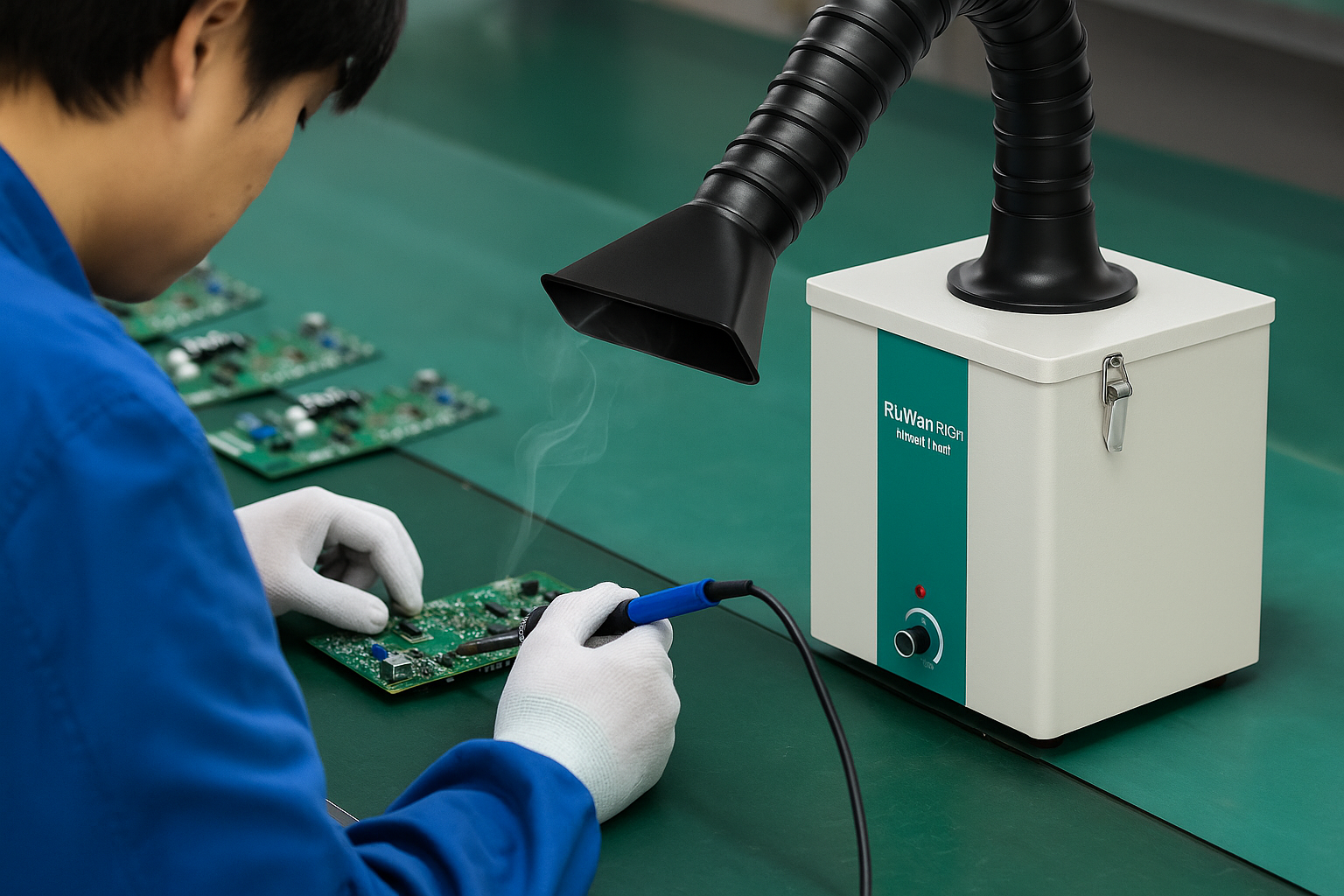 Trong các hoạt động hàn linh kiện điện tử, khò thiếc hoặc khắc laser, lượng khói bụi và khí độc sinh ra thường chứa bụi mịn PM2.5, VOCs, và hơi benzene, ketones – gây hại nghiêm trọng cho hệ hô hấp và môi trường làm việc. Để đảm bảo không gian sạch, bảo vệ người thao tác và thiết bị điện tử, máy hút khói hàn Ruiwan RC01 là lựa chọn lý tưởng với thiết kế nhỏ gọn, hoạt động mạnh mẽ và bộ lọc ba lớp hiệu quả cao.